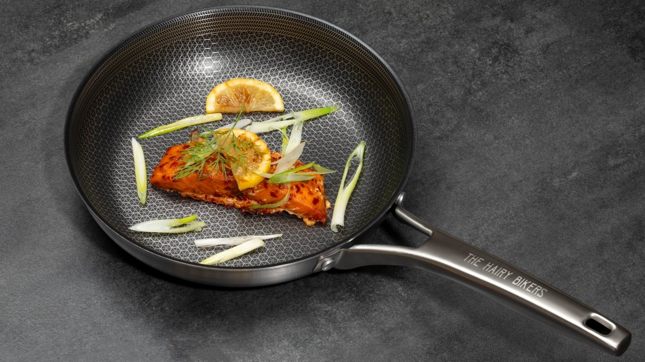 Delve into a world of culinary adventures with The Hairy Bikers HexGuard™ Cookware Series, featuring advanced technology for unparalleled durability and even heat distribution. It's ideal for sautéing vegetables, browning meats, and whipping up speedy stir-fries, with the wide base and tapered sides perfect for uniform cooking. The pan's construction uses high-quality tri-ply stainless steel providing an exceptional non-stick surface, which is robust and compatible with metal kitchen tools.